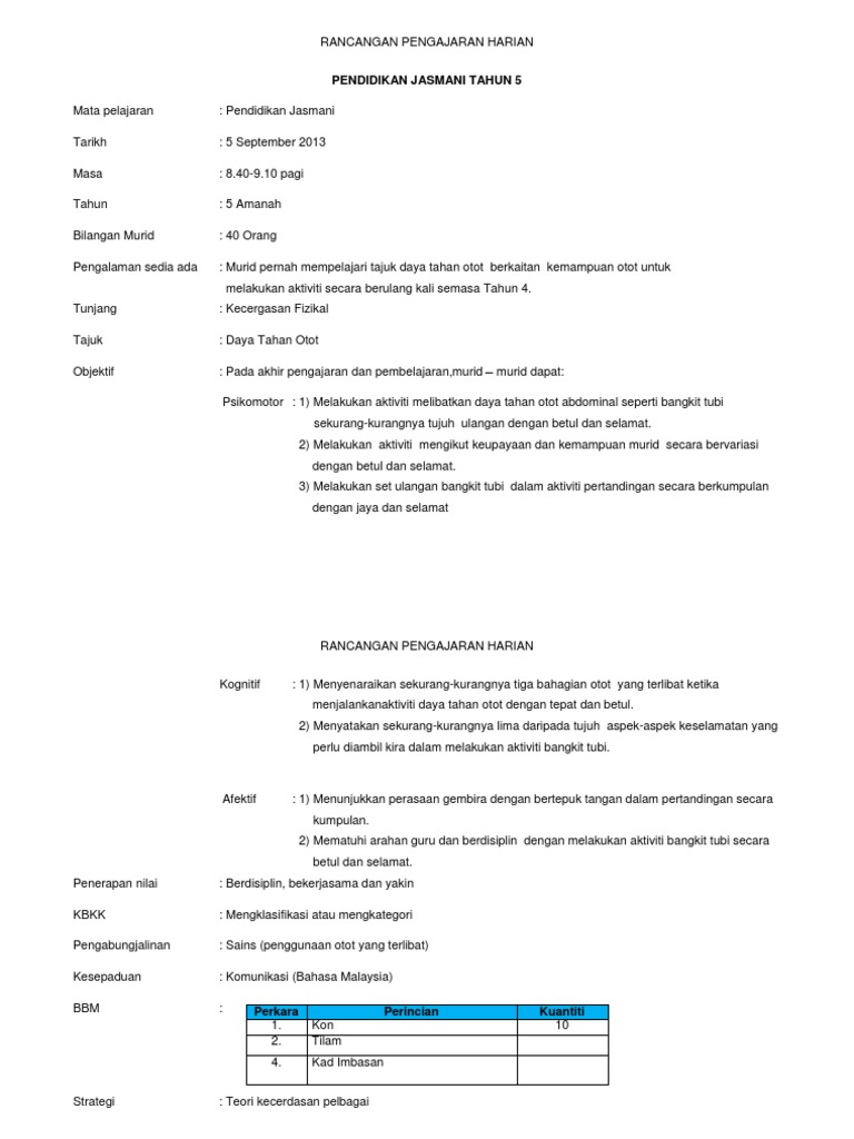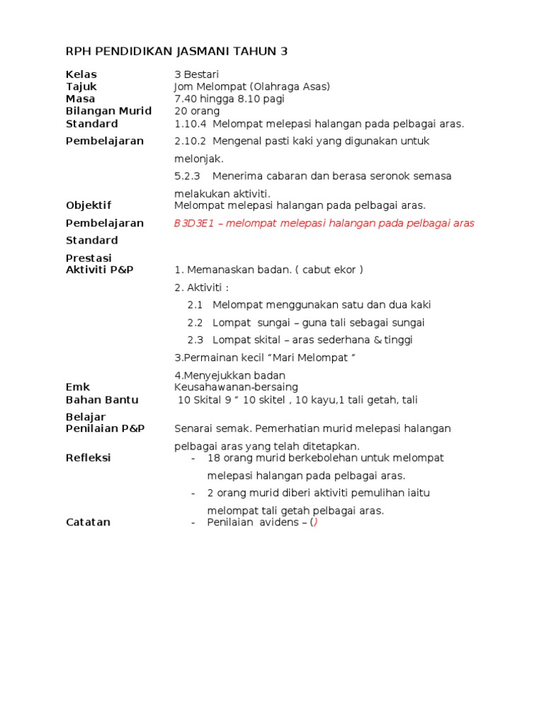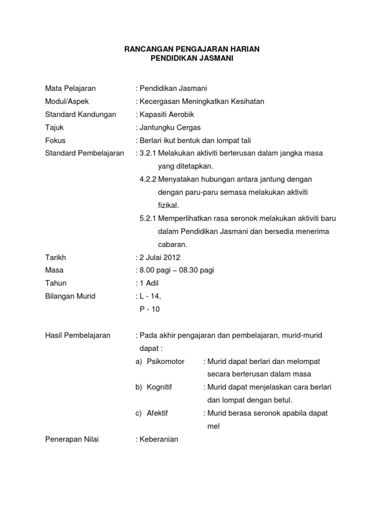 Pdf Rancangan Pengajaran Harian Pendidikan Jasmani Kssr Tahun 2 Rod Zie Academia Edu